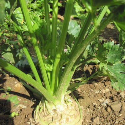 Apios graveolens var. rapaceum (100 days) Open pollinated. Gorgeous and delicious root vegetable tastes like celery but slightly nutty, with a texture like potato. Stores well, great for winter stews.