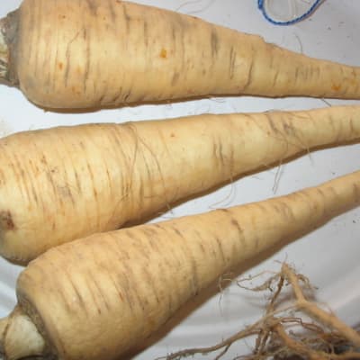Culture: Seed is short-lived; if you are planning to use old seed, germ test in paper towels before sowing. Minimum germination temperature 46°, optimal range 55–77°. Slow to germinate (14–21 days). Prepare a deep seedbed and keep it moist with frequent watering until emergence. Sow about 1" apart in mid-spring. Thin to 2–3". Parsnips require a full growing season. Suitable for harvest after frost for late fall delights. Parsnips left to overwinter in the ground will nearly triple their fall sugar content. For the best early spring treats, harvest as soon as possible before the plants resume growth. Roots become more woody as the plants re-grow.