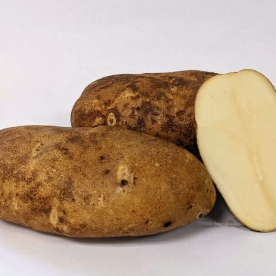 Solanum tuberosum Very late season, tan skin, white flesh. Known to most as the Idaho Potato, the dry mealy texture makes it a trusty old favorite. A great baking or mashing potato. Its reliably high yields mature late in the season.